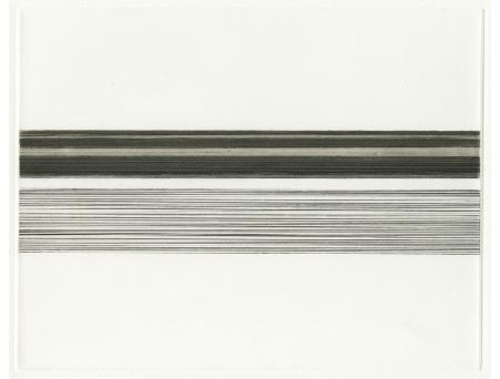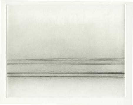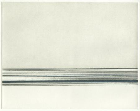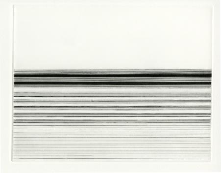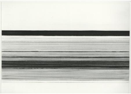 RACHEL O'HARA A fascination with the horizon, and other linear aspects of landscape led to an exploration of line and its complex relationship with space and surface. By isolating the edges of sky and sea and paring down the process to an economy of means, a new relationship between landscape and abstraction emerges. In print, the focus of the work is the relationship between the language of the medium and simplicity of form. The essential properties of a grooved line on an etching plate or a crayon mark on a litho stone are as much a starting point as the horizon drawings themselves. The wide border space surrounding the line formations suggests an infinite and ambiguous space, pushing the lines beyond the plate edges. The work is developed in small increments, from one drawing or print to another, with subtle changes in structure or tone. Relationships between method and spontaneity, ideal and imperfect forms, surface and depth inform that process. The original sources of horizons, sea edges, sky and landmass are evident in the work. The shifting balance between the natural and formal give the work its meaning. |